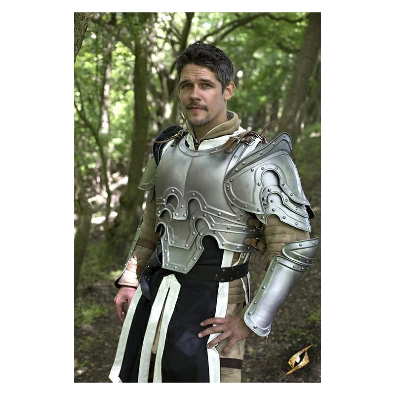 <p> <p>Erhältlich in Größe L</p> <p>Lieferzeit: ca. 15 Tage</p> <p>Es besteht aus: <br />- Vorderer und dorsaler Brustpanzer <br />- Schulterprotektor <br />- Unterarm- und Ellbogenprotektor <br />- Schienbein- und Knieprotektor <br />- Wappenrock und Gürtel.</p>Einer unserer Bestseller! Spektakuläre funktionelle Rüstungen, inspiriert von denen, die in Warcraft verwendet werden.<br /><br /> Hergestellt aus 1 mm dickem Kohlenstoffstahl mit laminierten Kanten.<br /><br /> Die Armbänder und Accessoires sind aus hochwertigem, handgefertigtem Leder gefertigt, geschweißte Teile für maximale Haltbarkeit.<br /><br /> Rostbeständige Beschichtung.<br /><br />
