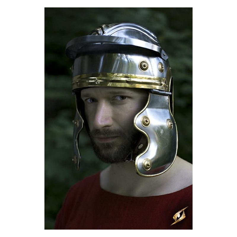 <p>Es besteht aus 1 mm / 19 dickem Baustahl und wird für maximale Haltbarkeit handgefertigt, es hat ein poliertes Stahl-Finish und seine laminierten Kanten sind nicht scharf. Sie verfügt über Armbänder und Accessoires aus hochwertigem Leder.</p> Größe: Mittel Gewicht: 1855 Gramm <p> </p> <p> </p>Helm, der in den römischen Legionen in der Schlacht getragen wurde.<br /><br />
