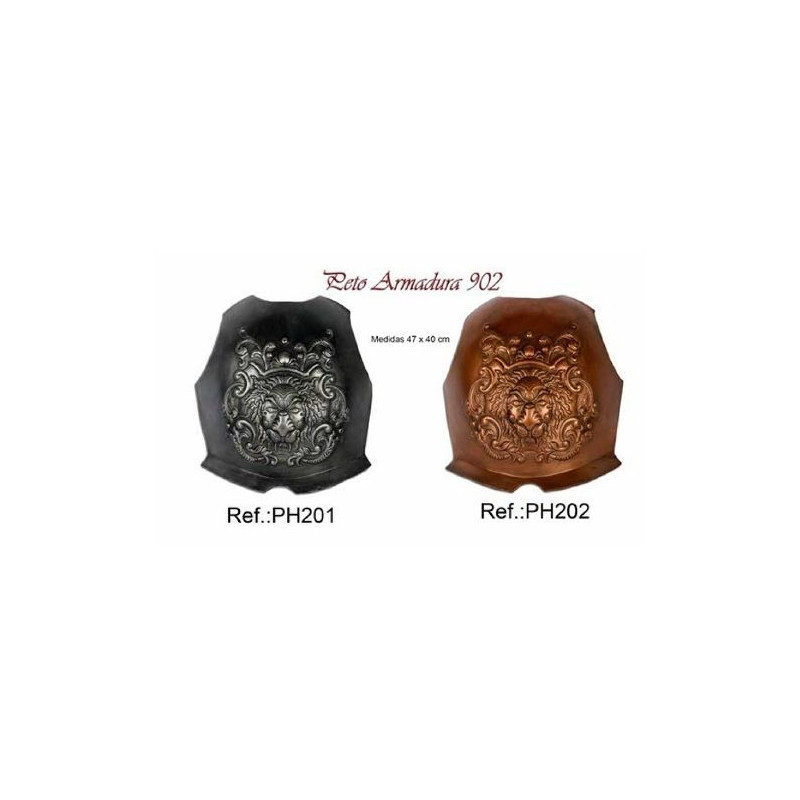 Beeindruckender Brustpanzer aus Rüstung aus dem prestigeträchtigen MARTO Haus Toledo.<br /><br /> Es handelt sich um einen lebensgroßen Brustpanzer, auf dessen Brust ein Löwe eingraviert ist.<br /><br /> Es besteht aus Hybrid-Polyurethan oder hochfestem, handbemaltem Hybrid-Polyurethan oder Polyresin.<br /><br /> Es handelt sich um ein nicht-funktionales Dekorationsstück.<br /><br /> MASSE: 47 X 40 CM DER PREIS GILT PRO STÜCK