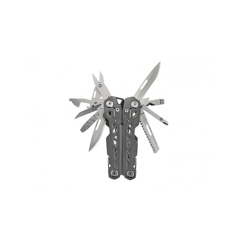 Das Multifunktionswerkzeug GERBER Truss umfasst 19 Funktionen. Er verfügt über ein Schmetterlingsöffnungssystem für einen einfachen Zugang zu seinen Komponenten. Es verfügt über ein Verriegelungssystem, um sicher zu arbeiten.