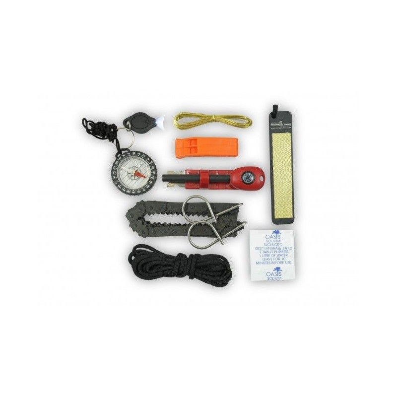 RAO AVIO ist die Überlebensversion, die von der italienischen Luftwaffe ausgewählt wurde, um das Ausrüstungspaket des Eurofighter Typhoon zu ergänzen. Die Scheide hält das Messer in der geöffneten Position. Das verbesserte Überlebensset enthält: Trillerpfeife, Taschenkettensäge, Wasseraufbereitungstabs, Kompass, Kupferdraht, Feuerstein und Schlagbolzen, LED-Licht, 2,5 m Paracord und Diamantplattenschärfer. Das Kit befindet sich in einer Tasche, die mit einem MOLLE-System am Holster befestigt ist.<br />DATENBLATT<br />Gewicht g: 335<br />Unzen-Gewicht: 11,8<br />Klingenlänge (mm): 119<br />Klingenlänge (Zoll): 4,7<br />Gesamtlänge (mm): 263<br />Gesamtlänge (Zoll): 10,4<br />Klingenstärke (mm): 6<br />Klingenstärke (Zoll): 0,24<br />Klingenmaterial: BöHLER N690 STAHL (58HRC)<br />Klingen-Finish: MIL-C-13924 BRÜNIEREN<br />Hauptgitter: BODEN<br />Griffmaterial: ANTI-CORODAL ELOXIERTES ALUMINIUM