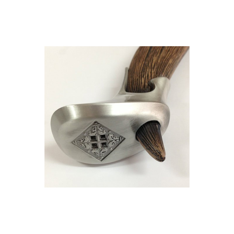 Dabei ging es darum, jedes Detail exakt wiederzugeben. Das Schwert ist fast einen Meter lang und hat eine Klinge aus Edelstahl, die mit einer geätzten Runeninschrift versehen ist. Die Abschnitte des Griffs bestehen aus massiven Metallteilen, imitierten Edelsteinen und einem Griff aus Acrylharz. Das Schwert wird mit einem dekorativen Holzschild und einem Echtheitszertifikat geliefert. Details: • Gesamtlänge: 98,5 cm • Klingenlänge: ca. 65,5 cm • Klingenmaterial: AUS-6 Edelstahl • Griffmaterial: Harz Acryl • Inklusive dekorativer Hartholz-Wandplatte. - Jedem Schwert liegt ein Echtheitszertifikat bei.