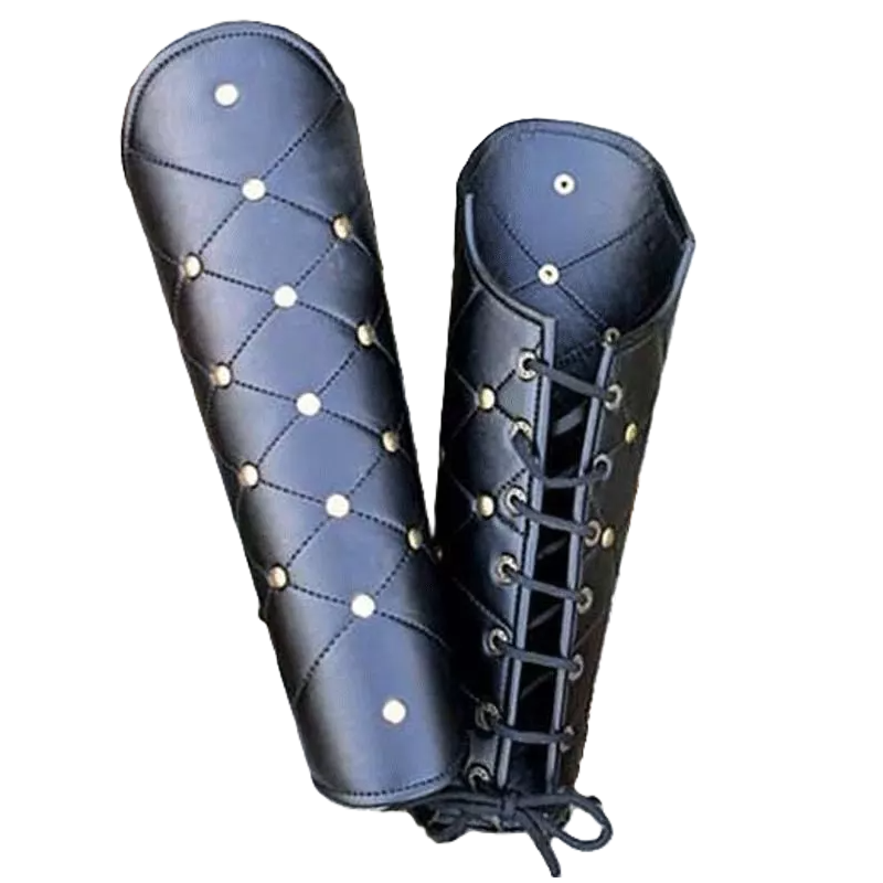 Diese atemberaubenden Beinschienen sind aus schwerem Leder gefertigt und den ganzen Tag über einfach und bequem zu tragen. Sie verfügen über einen Schnürverschluss und Messingnieten.