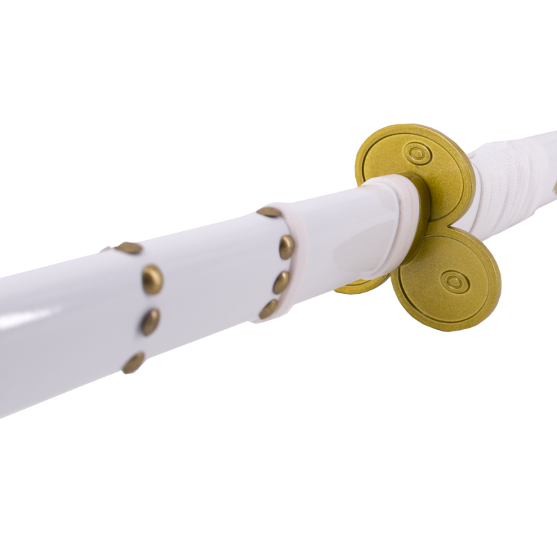 Katana S5005W Katana Enma von Zoro One Piece inoffizielle Replik 103,5 cm Stahlklinge in Schwarz mit roten Akzenten und Satinschliff, weißer Griff mit goldenen Akzenten. Nr. S5005W