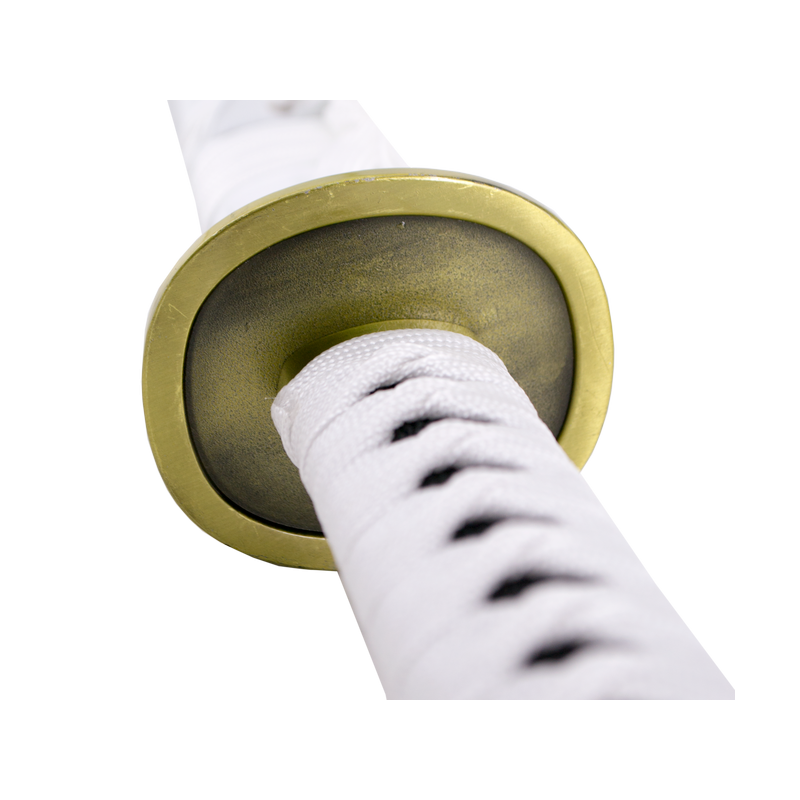 <p>Katana S5021 Shusui Wado Ichimonji von Zoro's One Piece inoffizielle Replik 103 cm schwarze Stahlklinge mit Satinschliff, Griff mit weißer Besaitung, mit Ständer. Nr. S5021</p>