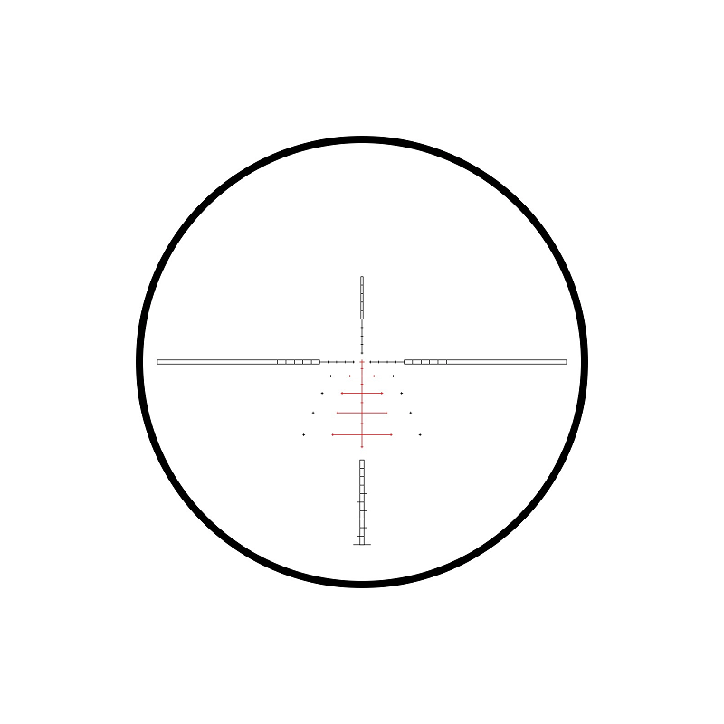 Basierend auf der Ballistik seiner Munition garantiert das SR Pro II-Absehen, das exklusiv für Hawke erhältlich ist, Zielpunkte unabhängig vom Kaliber. Das Raster besteht aus einem beleuchteten zentralen Punkt, vertikalen Sichtmarkierungen sowie Driftmarken in Form von Balken und Punkten, Zwischenräumen, die die Sicht nicht behindern, und Markierungen zur Entfernungsschätzung.
