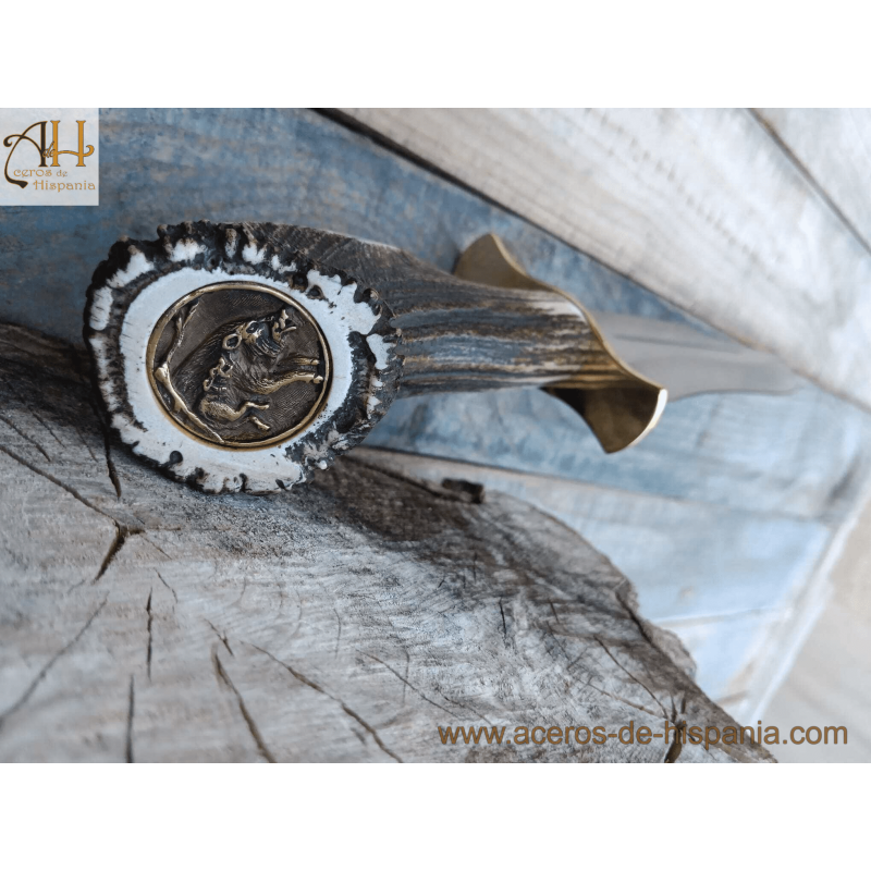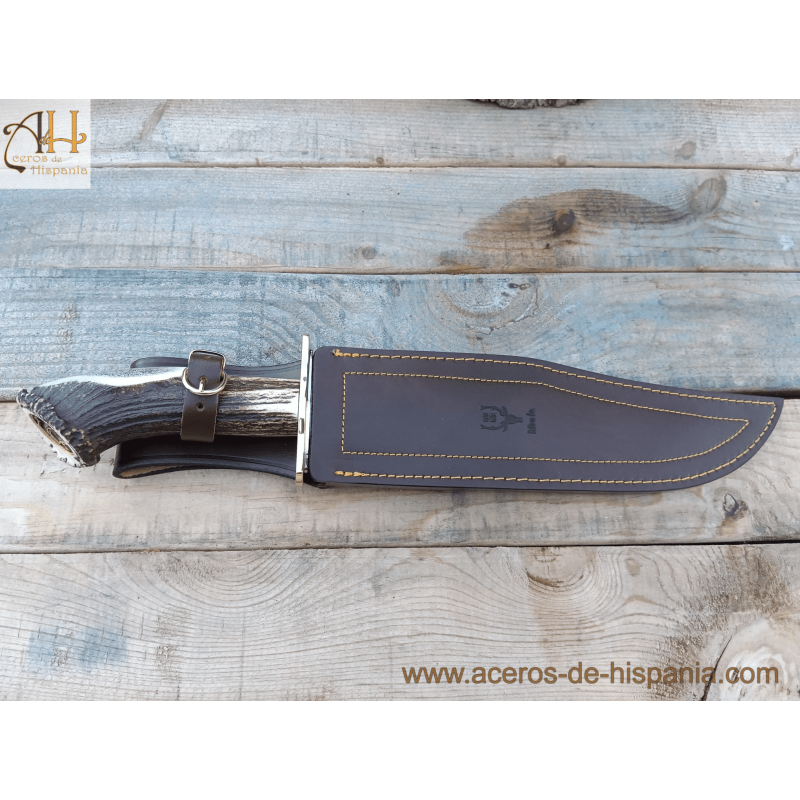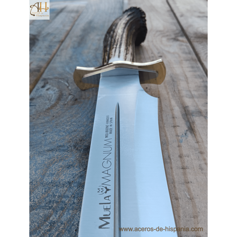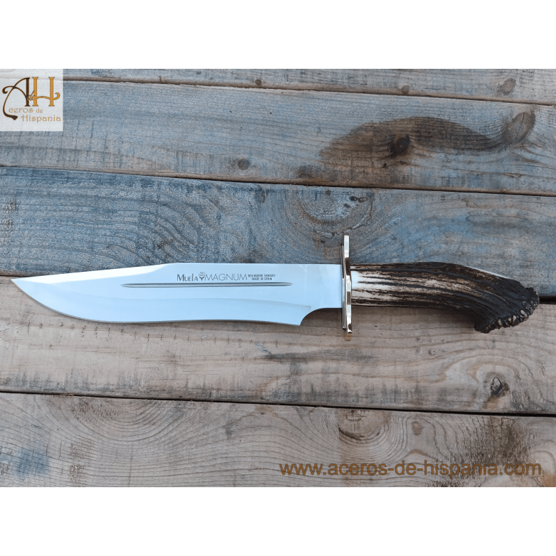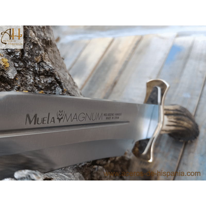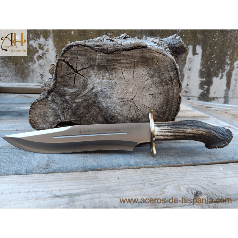 Magnum Muela Messer sind Jagd- und Sportmesser. Messer mit Hirschgeweihgriff und Rosette mit Verteidigung aus Messing und Edelstahl.