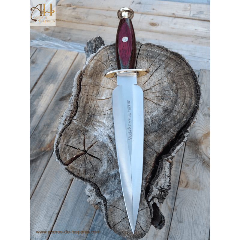 <p><span style="color:#000000;">Handgefertigtes Muela Messer, Modell Caribou. Dieses Modell gehört zu den Sport- und Jagdmessern, die speziell für die Endbearbeitung von Messern entwickelt wurden. Es hat eine 205 mm Molybdän-Vanadium-Stahl-Klinge mit der Speerspitze.</span></p>