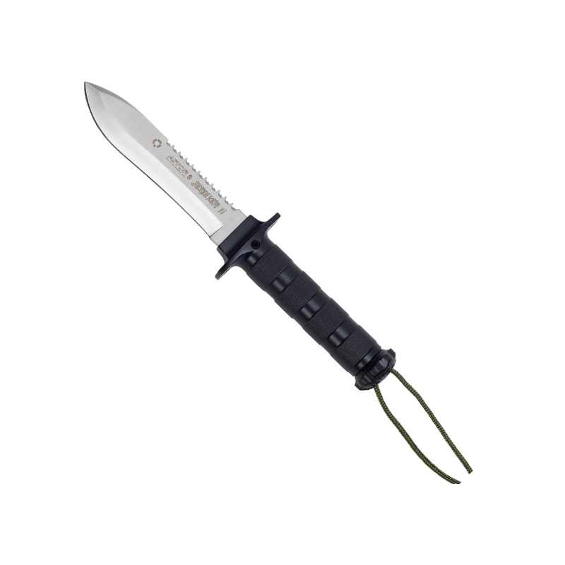 Eines der herausragenden Merkmale dieses Messers ist seine 135 mm lange und 4 mm dicke Klinge. Diese Klinge besteht aus X42-Stahlblatt (INOX 46 CR13) und Doppelsäge und hat eine Härte von 55/58 HRC. Dank dieser Härte ist das Messer in der Lage, seine Schneide auch in den extremsten Situationen lange zu behalten.
