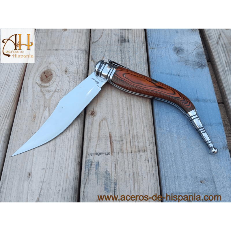 Schultermesser. Dieses Ratschen-Schultermesser hat 6 Federn und eine 22,50 cm lange Klinge aus 3Cr13Mov-Stahl und Hochglanz. Der Griff ist aus rotem Stamina gefertigt, mit einer Größe von 28,50 cm. Er hat eine Gesamtlänge von 51 cm, sein Gewicht beträgt 532 Gramm. Inklusive Basis.