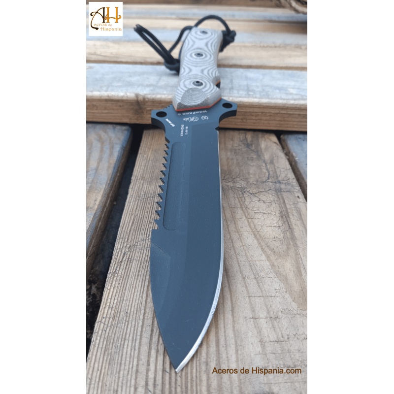 • Mikarka-Griff • Klinge aus gebläutem AN-58-Stahl • Inklusive 600d-Polyester- und PVC-Scheide