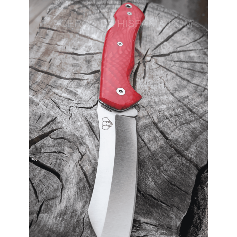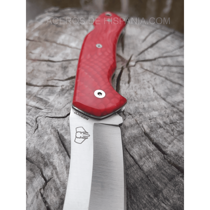Der Griff besteht aus Juma Roja, einem synthetischen Material von großer Schönheit, das natürliche Adern nachahmt und ein exklusives und raffiniertes Aussehen verleiht. Jedes Stück ist ein Unikat, da das Muster der Maserung variieren kann, was jedes Messer zu einem unwiederholbaren Werk macht. Das komfortable Lockback-System sorgt für Sicherheit während des Gebrauchs, und das ergonomische Design des Griffs von 10,5 cm sorgt für einen festen und bequemen Griff.
