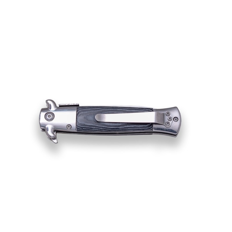 JKR590 HANDÖFFNENDES STILETTMESSER, 10 CM LANGE KLINGE AUS EDELSTAHL UND EINSCHNEIDIGE, MICARTA-MANSCHETTE.