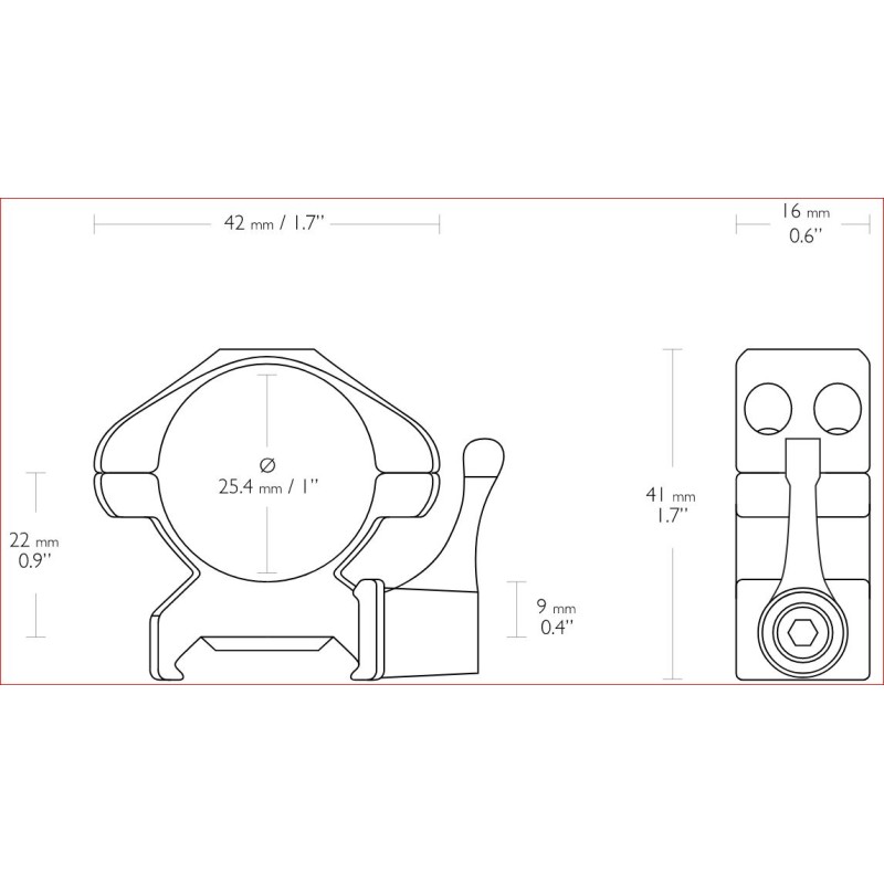 <p>Mittleres Modell</p> <p>Ringgröße (Durchmesser) 1 Zoll</p> <p>Schienen-Weber</p> <p>2-teilige Konfiguration</p> <p>Bindungen (oben) Double Torx (T15)</p> <p>Gewinde (oben) 6-48</p> <p>Befestigungselemente (Schiene) Hebel</p> <p>Gewinde (Schiene) 8-32</p> <p>Internes Polster Nein</p> <p>Einziehbarer Rückstoß-Anschlagstift Nr.</p> <p>Höhe 1,6" 41mm</p> <p>Gewicht: 5,6 Unzen, 159 g</p>
