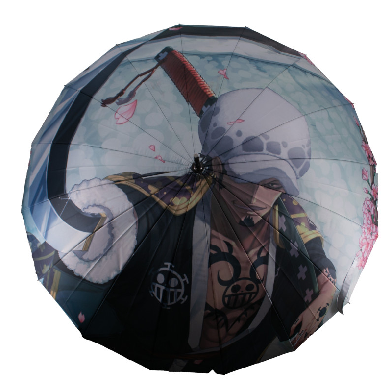 Der Durchmesser des aufgespannten Schirms beträgt 110 cm mit einer Zeichnung von Trafalgar Law.