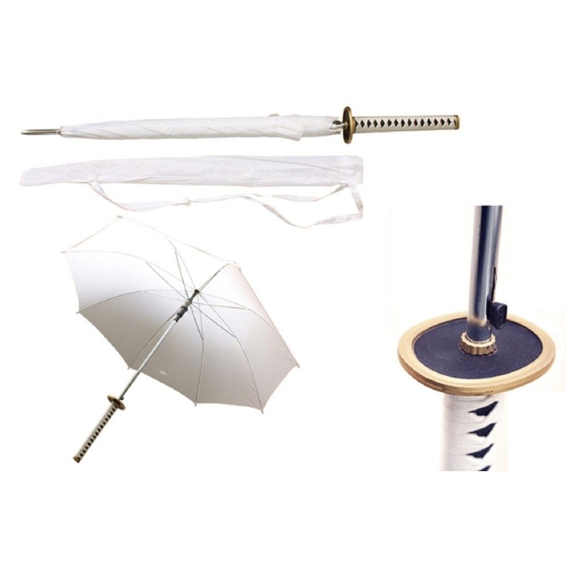 Der Regenschirm ist von Zoros ikonischem Schwert, Wado Ichimonji, inspiriert und hat eine weiße Abdeckung, die die Scheide des Katana nachahmt.