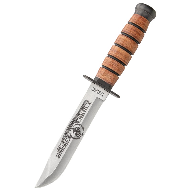 <p>Dieses Messer von United Cutlery ist eine Hommage an das United States Marine Corps, das USMC Tribute Combat Knife wurde von den Marines im Ersten Weltkrieg verwendet.</p> <p>Auf dem Blatt sind allegorische Zeichnungen des USMC eingraviert. </p> <p>Scharfe 17,9 cm lange Klinge aus rostfreiem Stahl. </p> <p>Kommt mit einem Lederholster mit Gürtelbügel</p> <p> </p><p>Details:</p> <p>- Klinge: Edelstahl mit Gravur </p> <p>- Griff: Gepresstes Leder</p> <p>- Klingenlänge: ca. 17,9 cm </p> <p>- Gesamtlänge: ca. 31,2 cm </p> <p>- Inklusive Lederetui </p> <p>- Hersteller-Referenz: UC3369</p>