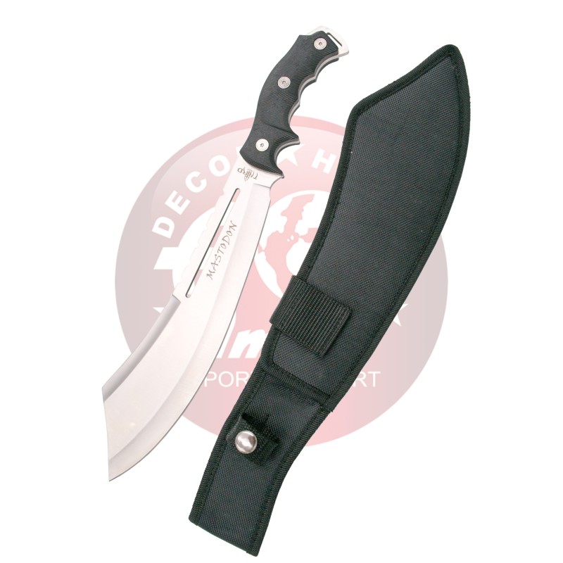 Mastodon-Modellmesser / Machete mit 26,8 cm Stahlklinge in Satin, mit schwarzer Nylonscheide.