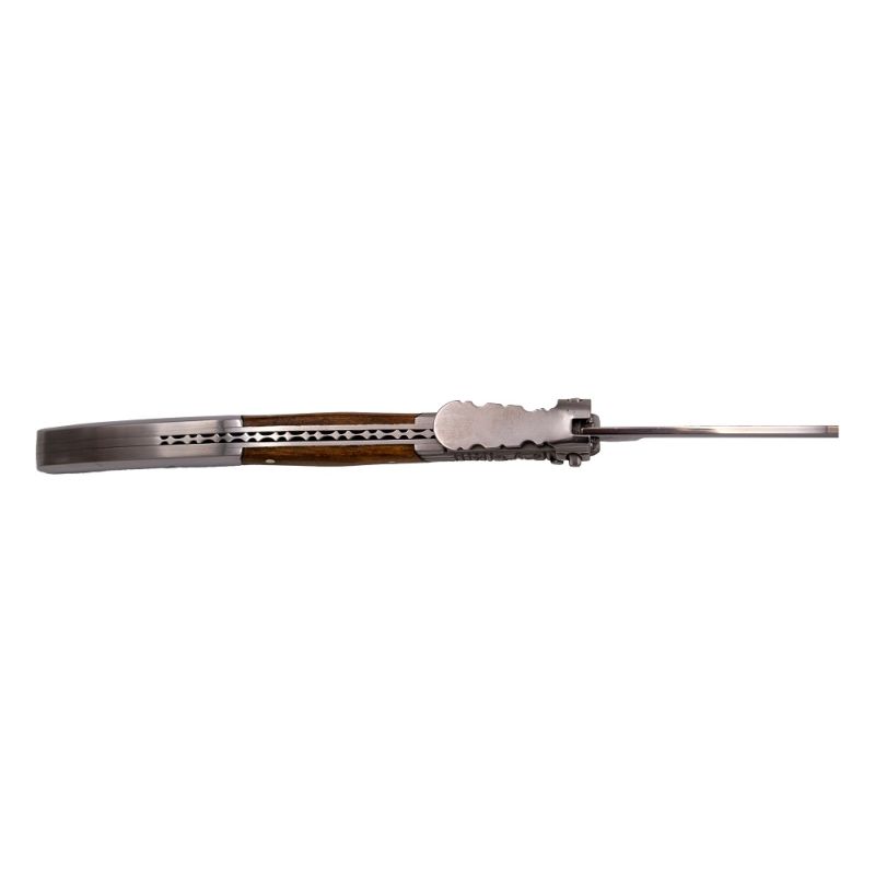 Griff mit Aderendhülsen aus rostfreiem Stahl in Hochglanz und Olivenholz.