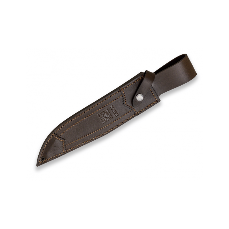 <p>Böhler N695 Klinge aus rostfreiem Stahl</p> <p>Solide Struktur und Dicke von 5 mm</p> <p>Klingenlänge: 24 cm</p> <p>12,5 cm Griff aus Walnussholz mit Einlage.</p> <p>Loch für Bindfaden</p> <p>Aderendhülse aus rostfreiem Stahl</p> <p>Gewicht: 465 Gramm</p> <p>Braunes Lederetui</p> <p>Entworfen und hergestellt in Albacete, Spanien</p>