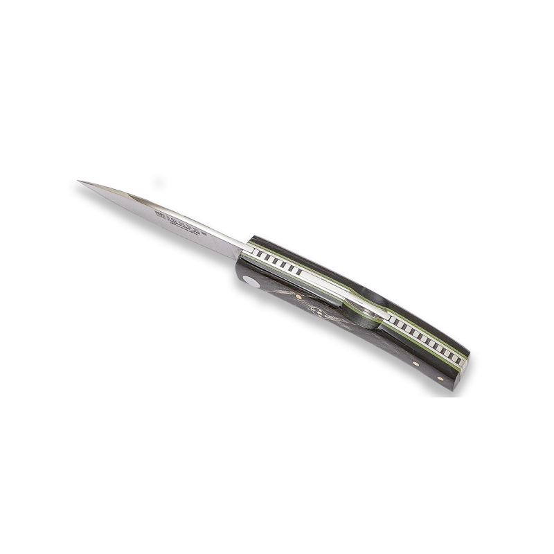 <p>Stahl: Edelstahl. 14C28N</p> <p>Härte: 58 - 59 HRC</p> <p>Griff: Büffelhorn</p> <p>Es hat eine Hecksicherung</p> <p>Klingen-Tipp: Drop-Punkt</p> <p>Blech in Satin-Ausführung</p> <p>Klingenlänge: 8 cm</p> <p>Klingenbreite: 1,9 cm</p> <p>Klingenstärke: 2,3 mm</p> <p>Gewicht des Messers: 71 Gramm</p> <p>Entworfen und hergestellt in Spanien (Albacete)</p>
