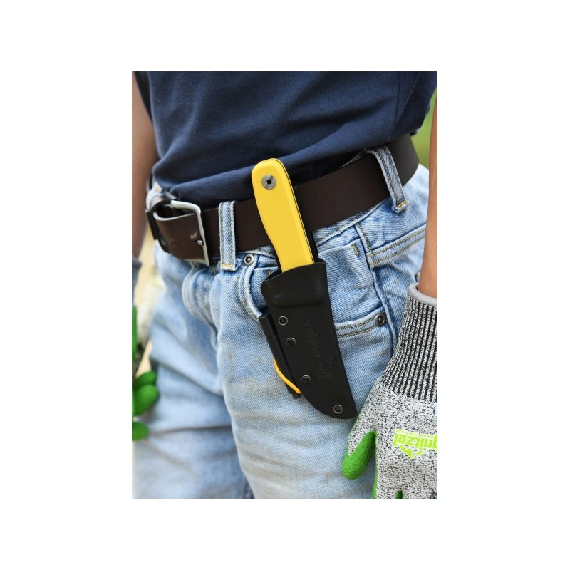 <p>Schnitzel DU Messer, für Kinder, gelb</p> <p></p> <p>- Klingenmaterial: Edelstahl 14C28N mit Korrosionsschutzbeschichtung </p> <p>- Griffmaterial: G-10 in gelb (auch in olivgrün, rot und lila erhältlich) </p> <p>- Gesamtlänge: ca. 18,5 cm </p> <p>- Klingenlänge: ca. 8,5 cm </p> <p>- Klingenstärke: ca. 3 mm </p> <p>- Grifflänge: ca.</p> <p>ca. 10 cm </p> <p>- Griffstärke: ca. 14 mm </p> <p>- Inklusive Kydex-Scheide, Halter aus feuerfestem Stahl (schwarz) und feuerfestem Stahl </p> <p>- Gewicht: ca. 128 g (ca. 176 g mit Koffer)</p>