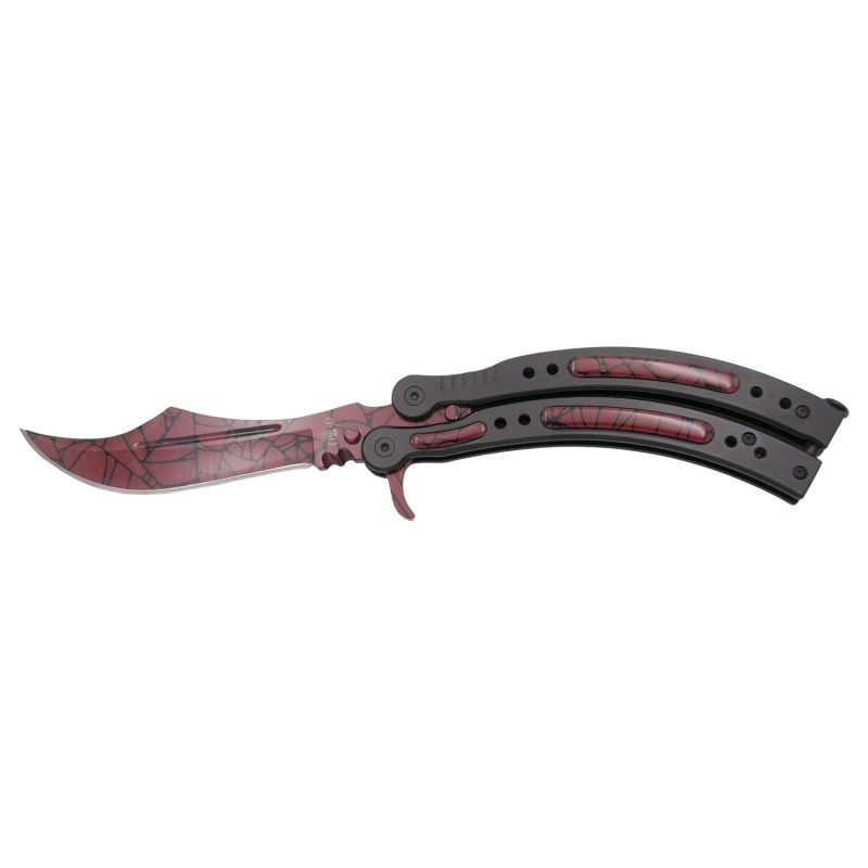 Fächermesser Third 31047R Modell CSGO 420 Stahlklinge von 13,6 cm in roter Ausführung mit Spinnwebenmuster in schwarz
