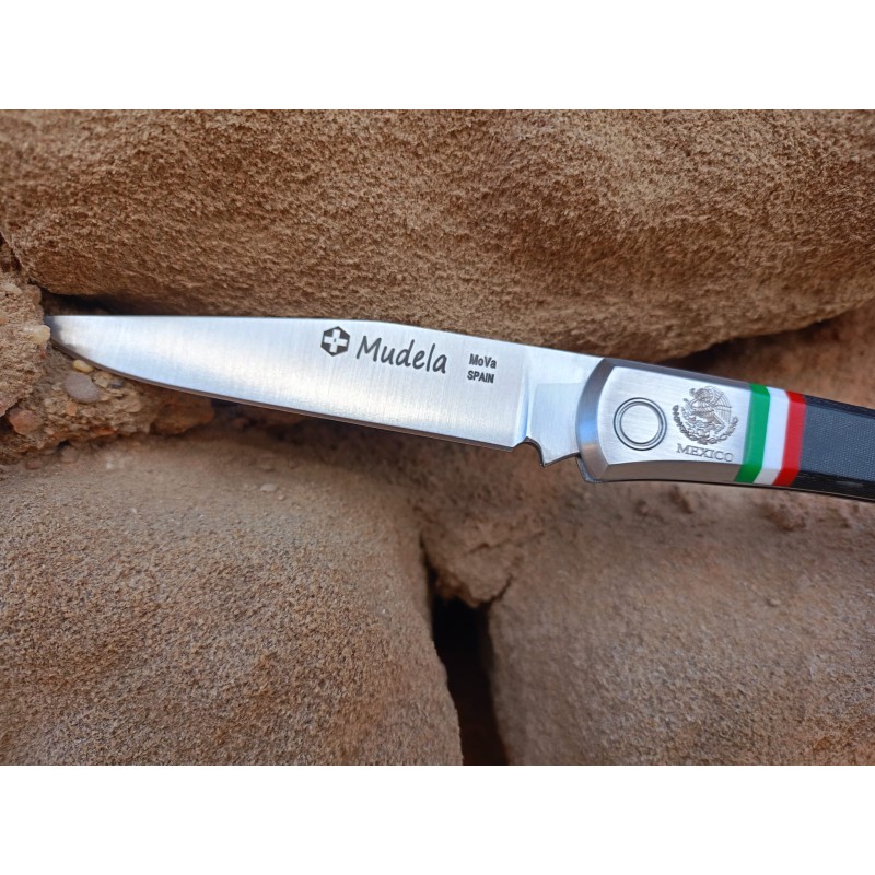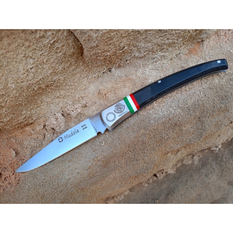 <p>Taschenmesser Mudela mexikanischer Flagge JG-94.3B</p> <p></p> <p>KOLBENSYSTEM</p> <p></p> <p>KLINGENLÄNGE 94 mm</p> <p></p> <p>GRIFFLÄNGE 113 mm</p> <p></p> <p>KLINGENSTÄRKE 2,5 mm</p> <p></p> <p>UNGEFÄHRES GEWICHT 80 g</p> <p></p> <p>MOVA-380 KLINGE AUS EDELSTAHL</p> <p></p> <p>ADERENDHÜLSEN, AUSKLEIDUNGEN UND ROSTFREIE NIETEN</p> <p></p> <p>GRIFF: MICARTA NEGRA</p>