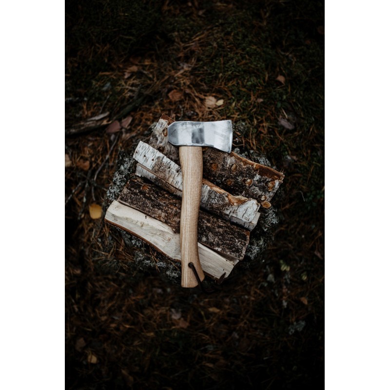 Die Trekkingaxt hat einen robusteren und ergonomischeren Griff, der für einen sicheren Halt sorgt. Durch seine schwerere Klinge eignet er sich auch ideal für anspruchsvollere Aufgaben. Gewicht der Klinge: 500 g.