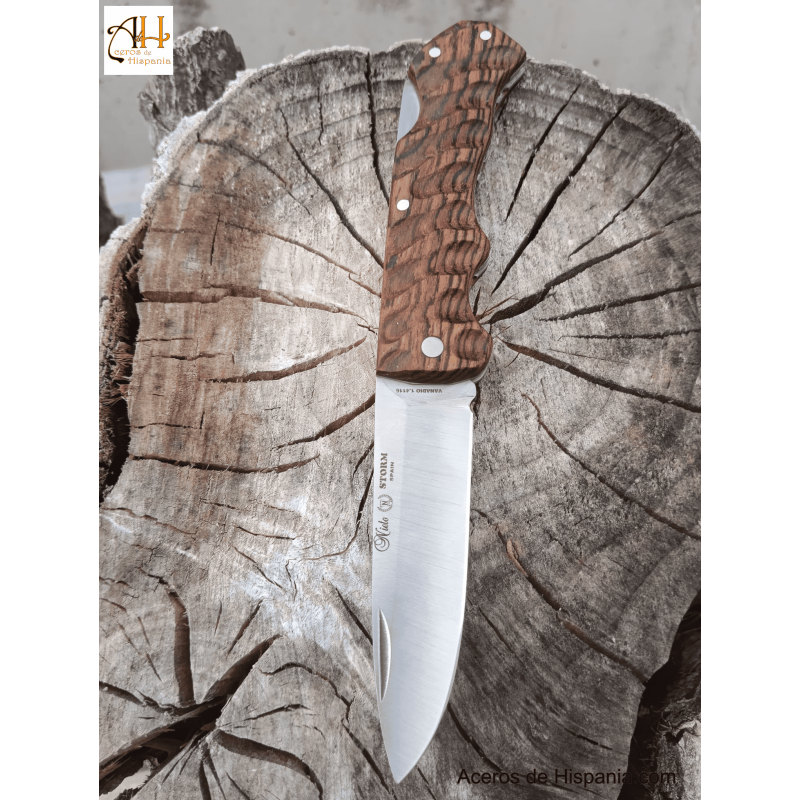 Storm Nieto Knives, das Modell storm 200 ist ein Messer aus AN-58 Stahl mit einer Länge von 8,50 cm. Er verfügt über Griffe aus natürlichem Bocote-Holz mit einem Verschlusssystem. Es hat eine Gesamtlänge von 19 cm, es ist ein sehr leichtes Messer mit einem Gewicht von 100 Gramm.