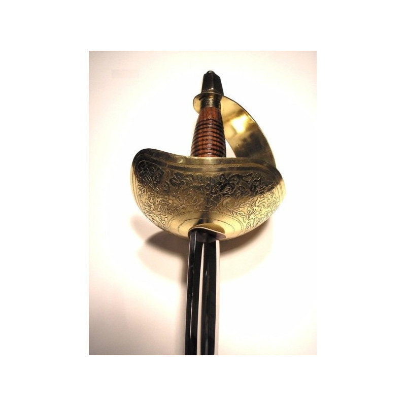 Piratenschwert mit Edelstahlklinge, Holzgriff und geschnitzter Schale mit Antikgold-Finishes.
