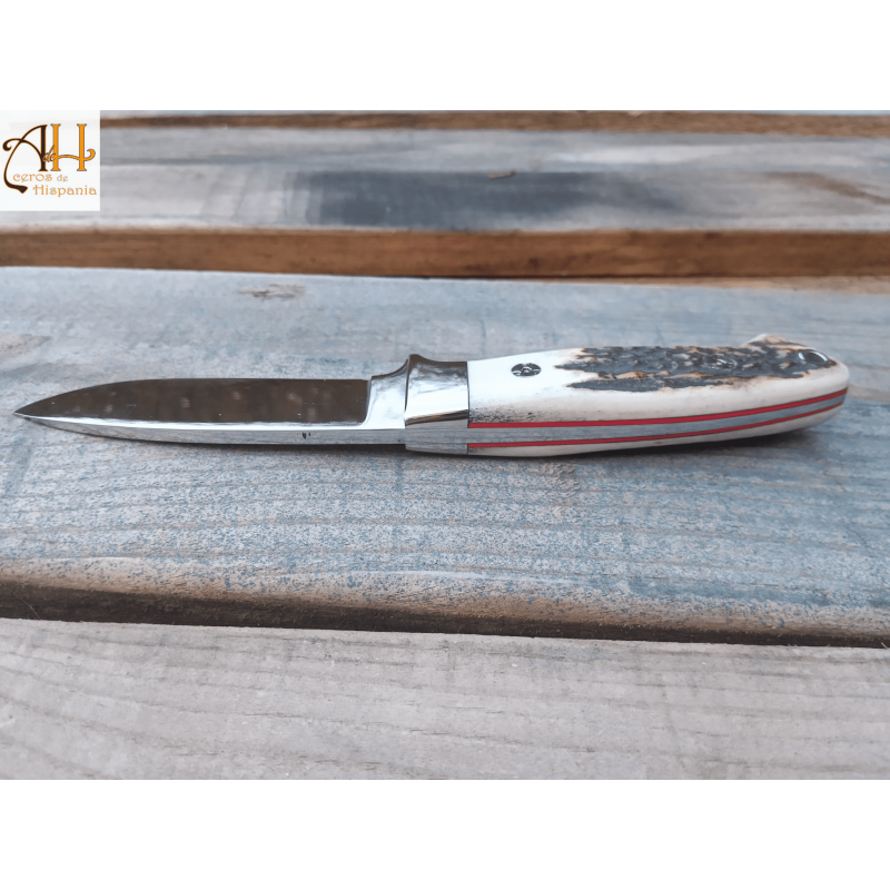 HANDLE MATERIAL: POLISHED DEER STAG WHIT RED LINERS