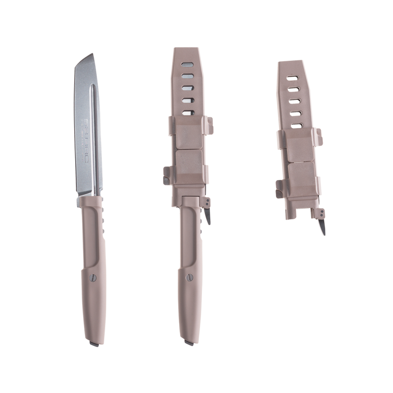 Tactical Knife with light weight, very easy-to-hold.<br /><br />It comes with kydex sheath with innovative quick release system.<br /><br />Thanks to its special reduced shape, the sheath can be easily inserted in the loops of the M.O.L.L.E system.<br /><br />Available in Black, Desert, HCS and Ranger Green colors