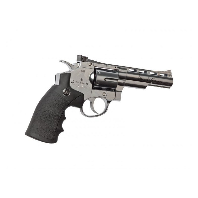 <p>The shortest of the revolvers Dan Wesson is this version with a 4" gun. "This is a beautiful silver revolver.The all-metal fabrication gives a very solid impression and you can feel its quality immediately.The 12g Co2 capsule load on the handle and each of the 6 realistic cartridges can contain a BB that shoots at more than 130 m / s (420 fps) Includes: fast charger, 2 interchangeable tactical rails and 6 cartridges.<br /><br />CHARACTERISTICS<br />- Length: 242 mm / 9.7 inches<br />- Barrel length: 87 mm / 3.5 inches<br />- Capacity: 6 shots<br />- Standard charger: ASG16186<br />- Hop up type: No<br />- Speed: 134 ms / 440 fps<br />- Weight: 878gr / 1.9lb<br />- Energy: 1.8 joules<br /><br />Airsoft - CO2 - Dan Wesson - ASG - No blowback - Rail - Double action - Full metal - Easy load - Unique serial number - Silver - 6 mm -> 1-2J</p>