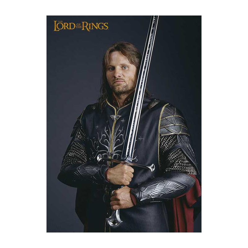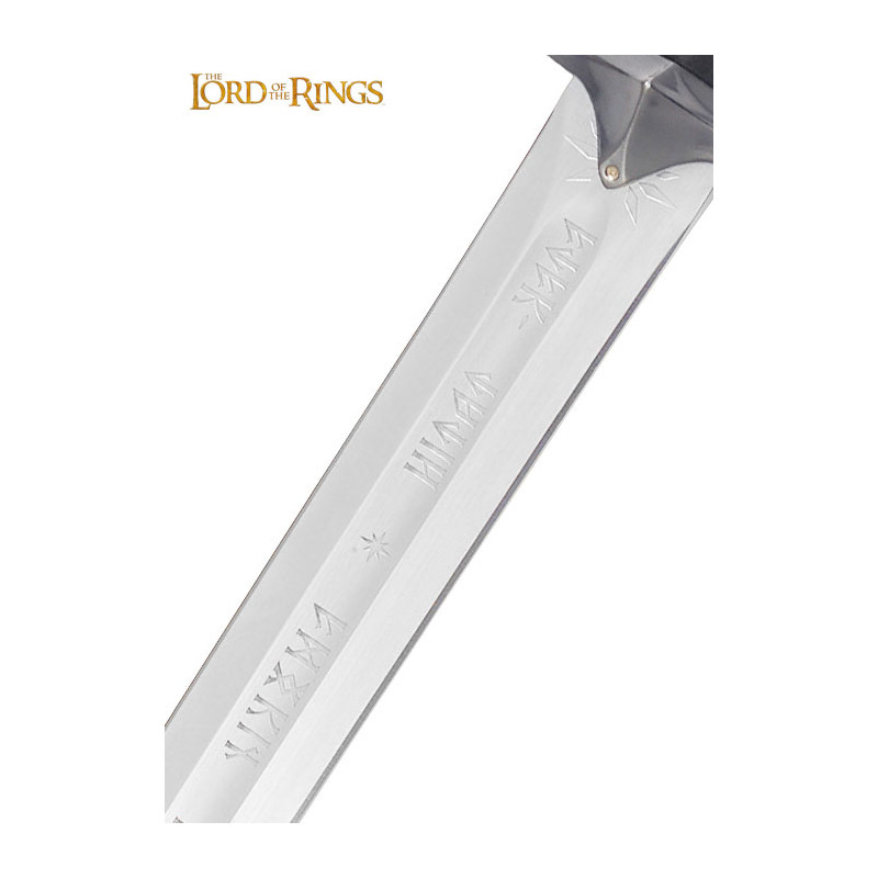 <p>Spectacular Anduril de Aragorn sword richly decorated with elven runes. The inscription in the Quenya language - in the runes of Eregion - on the sheet reads:Nanye Andúril i né Narsil i macil Elendilo. Lercuvanten i Mali Mordórëo and translates Im Anduril, once Narsil, the sword of Elendil. Let me free the slaves of Mordor. Aragorn gave him the sword also nicknamed Flame of the West. Details:</p>