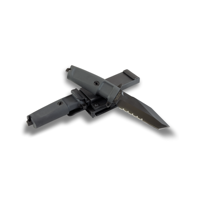 FULCRUM C is the compact version of the FULCRUM, which equals in robustness and sturdiness. Its downsized blade (only 4" 1/3 long) and handle make it comfortable to carry and easily concealed. The included hard sheath can be worn vertically, horizontally or obliquely (at a 45° angle), and sports a single automatic pressure-activated security lock for quick, easier drawing and sheating. This makes the FULCRUM C an intuitive, rapid-use knife, ideally suited to emergencies or self-defense. The original version of the FULCRUM C comes with a 3.9in compact handle, the Full Handle version comes with a more comfortable 5in handle. Available versions: FULCRUM C BLACK, FULCRUM C DESERT WARFARE, FULCRUM C FH BLACK, FULCRUM C FH DESERT WARFARE.