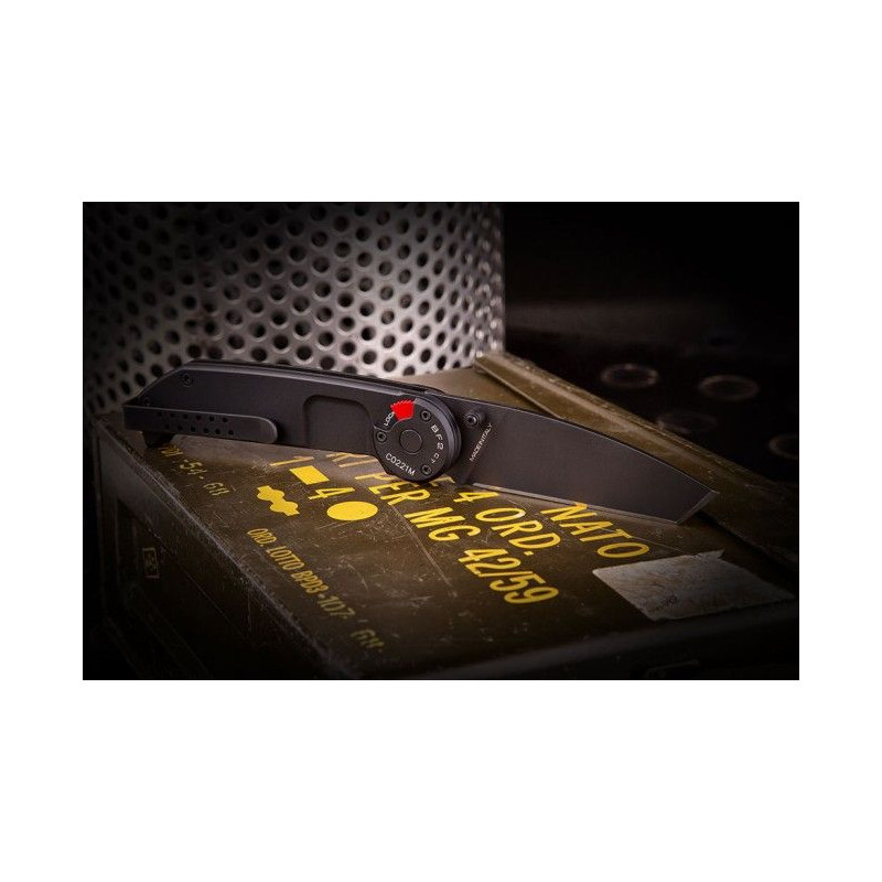 BF2"s are “Full size” folding knives especially suitable for professional use by military or police operatives on the field. The handle is solid and comfortable, with the reversible clip becoming a useful and comfortable resting point for the thumb in a “reverse” grip. Characteristical lowered flat areas in the handle give access to the opening “pins”, which don’t protrude from the knife when closed. The flat-ground blade is available in a drop-point or a tanto shape, featuring an extra-thick and stout tip (as in model BF1). The renowned LINER-LOCK blade-blocking system is paired with a carter-protected, manually-activated secondary blocking system. Available versions: BF2 CT BLACK, BF2 CT BLACK ROUGH, BF2 CT DESERT WARFARE, BF2 CT STONE WASHED, BF2 CD BLACK, BF2 CD BLACK ROUGH, BF2 CD DESERT WARFARE, BF2 CD STONE WASHED.