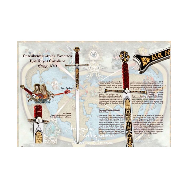 <p>The Catholic Monarchs, Isabella I of Castile and Ferdinand II of Aragon, after her marriage, produce the union of the crowns of Castile and Aragon, and the beginning of the unification of the Kingdom of Spain, later to make the promotion progress and nation building Spanish, a modern nation with a government of great diplomatic and military activity. The two-handed sword of the Catholic Kings, is one of the most famous in the history of Spain, was used in the solemn acts of the court for the appointment of gentlemen. With her I was appointed to Cristobal Colon at the Royal Palace in Barcelona, ??Admiral of the Ocean and Viceroy of the Indies. - 440 Stainless Steel Sword 57-60 hardness, hardened steel without air channel. - Length 120 cm. - Save chiseled steel - Details damask gold 24/22 K. carat embedded on steel - LIMITED EDITION numbered and certificate of authenticity.</p>
