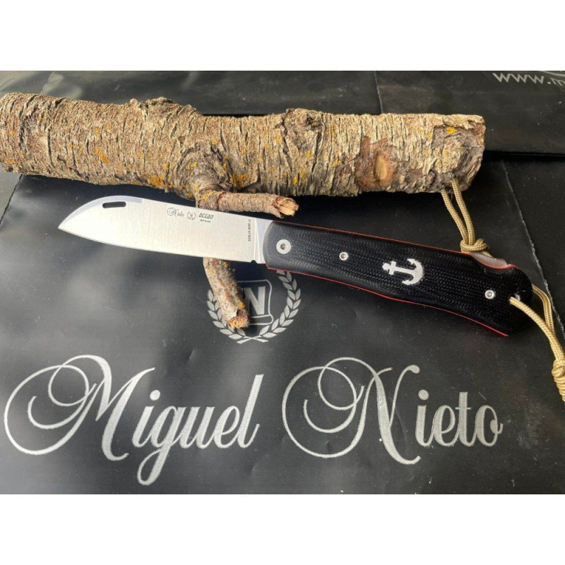 <p>Miguel Nieto Ocean R-7-AN Anchor Knife G10 Steel Bohler N690co <br />Miguel Nieto Ocea Anchor Knife of Spanish manufacture by the Miguel Nieto house (Albacete).<br />The blade has been manufactured in Böhler N690co stainless steel with flat grinding to the spine.<br />Marinera-type blade with ambidextrous finger grip.<br />BackLock blade locking system.<br />Black G10 handles with embedded anchor and red fiber separators.<br />It has a hole for a lanyard .<br /><br />Blade length: 8.5 cm<br />Total length: 19 cm<br />Thickness: 3.8 mm</p>