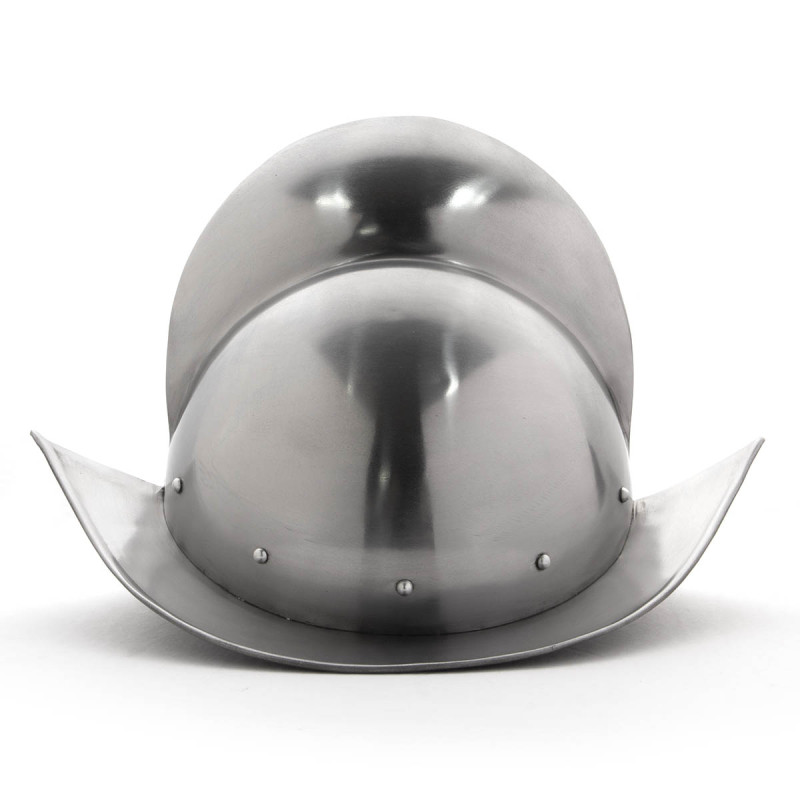 <p>The Morrión was used by early Spanish explorers and conquistadors during the 16th and early 17th centuries. It is characterized by a flat brim and a comb, or "crest", running from front to back, which deflected blows and protected the upper part.</p>
