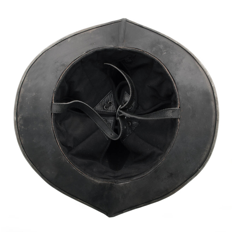 <p>Handmade in 18 gauge steel, with cloth lining and chin strap.</p>
