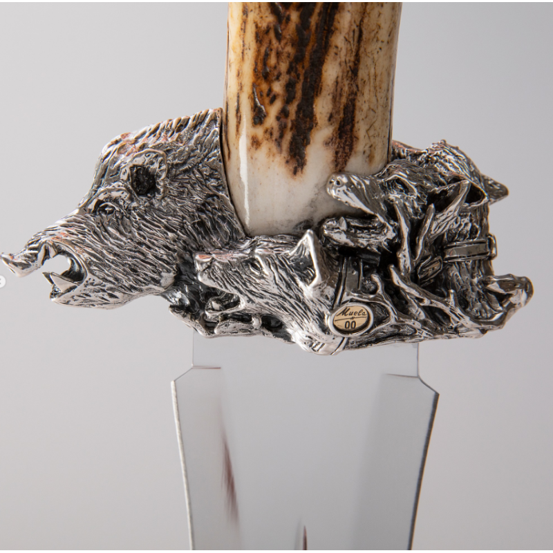 The unique design of the Muela Agarre knife, inspired by the hunting scene, makes it a tribute to the hunting tradition and to excellence in cutlery. Its combination of noble materials, such as MoVa steel and silver, together with the deer horn handle, makes it a luxury object for collectors.