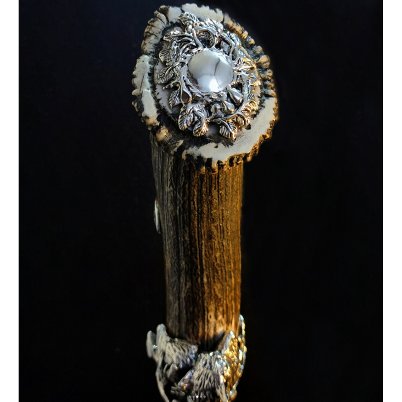 <p>Deer horn handle and rosette decorated with natural motifs.</p>