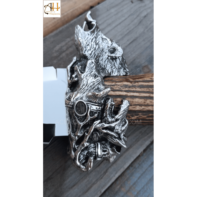 - Deer horn handle: With an ergonomic and elegant handle made of natural deer horn. The rosette decorated with natural motifs adds a touch of distinction that makes it a luxury piece.