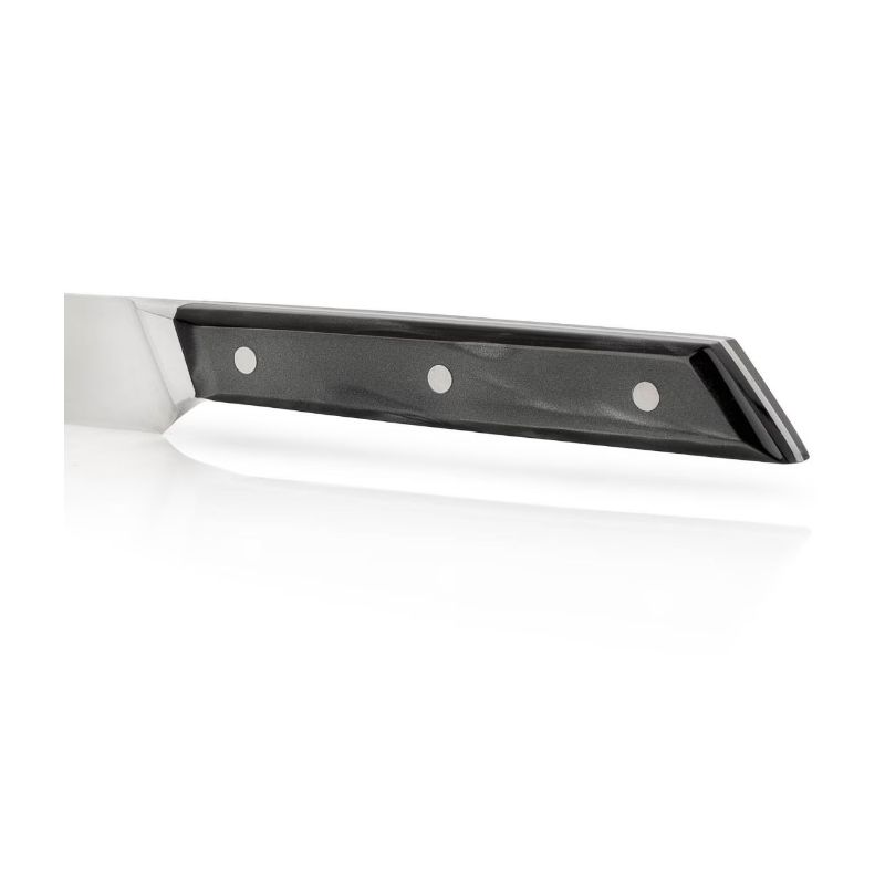<p>The handle design with beveled edges offers a modern and distinctive aesthetic, unlike any other knife.</p>