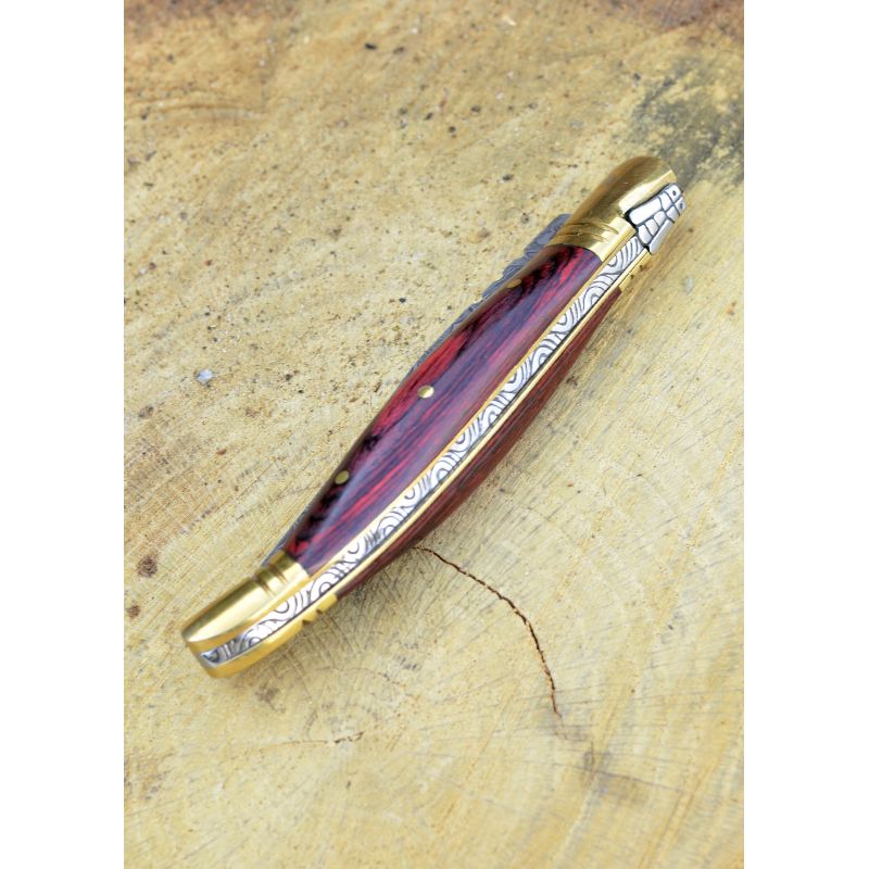Laguiole style knife with Damascus steel forged blade (176 layers) and wooden handle.
