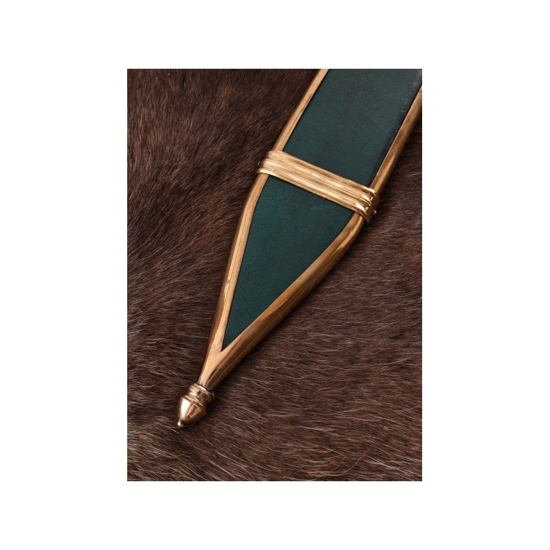 - Includes wooden scabbard with genuine leather sheath and brass fittings