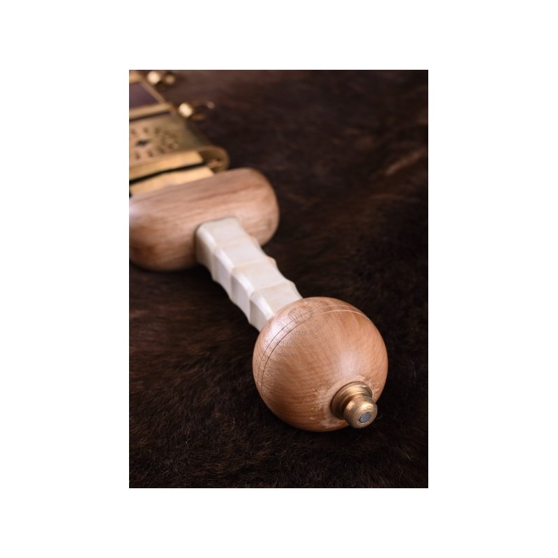 <p>- Material: EN45 spring steel blade (carbon steel, not stainless), bone handle, wooden guard and pommel, brass locking nut and guard inlay</p>