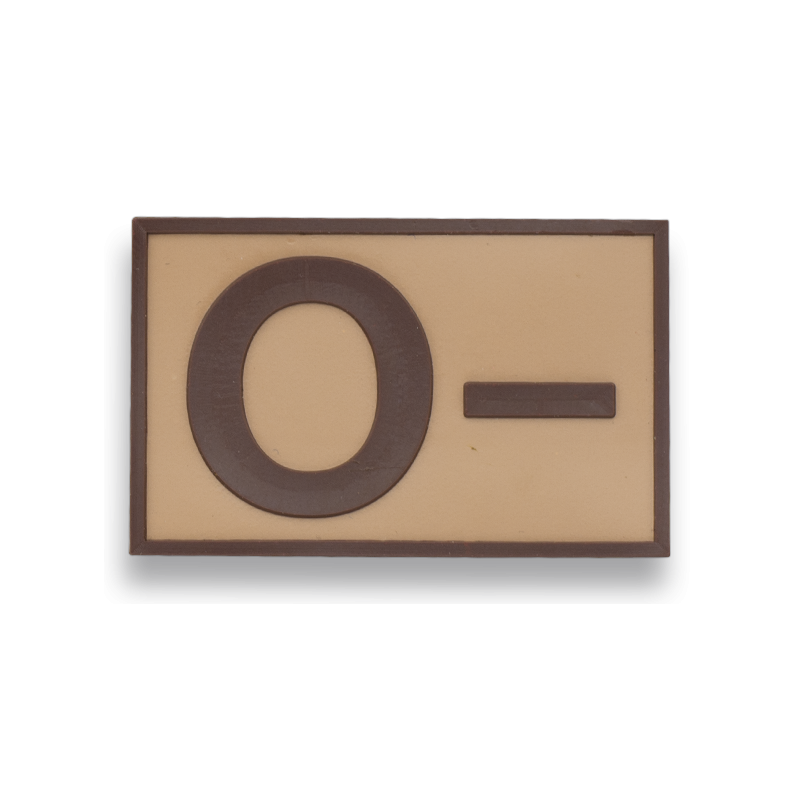 Patch. Blood type (O-) Rubber Brown Size: 5.4x3.4 cm
