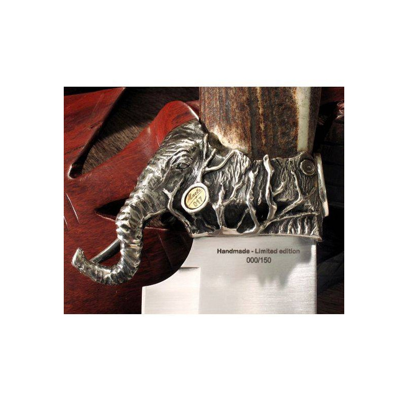 <p style="text-align:justify;"><span style="color:#000000;">This limited and numbered edition consists of only 150 pieces, making it an exclusive and one-of-a-kind piece. The handle is carefully crafted from stag horn, adorned with a decorative sterling silver rosette. The blade, approximately 25 cm in size, is made of chrome-vanadium alloy steel, ensuring durability and strength.</span></p>